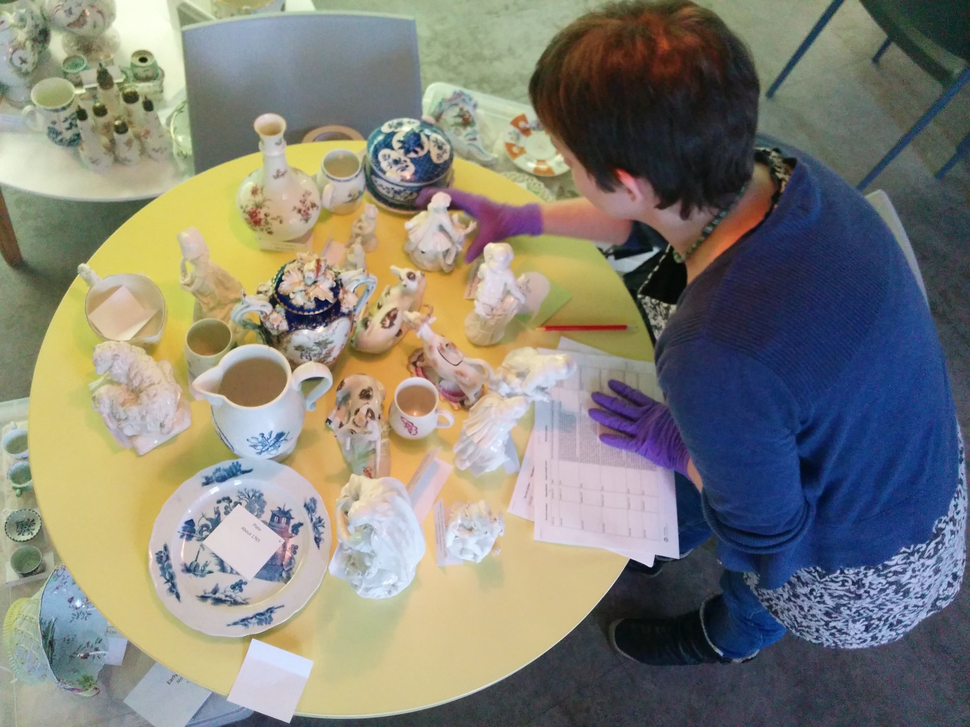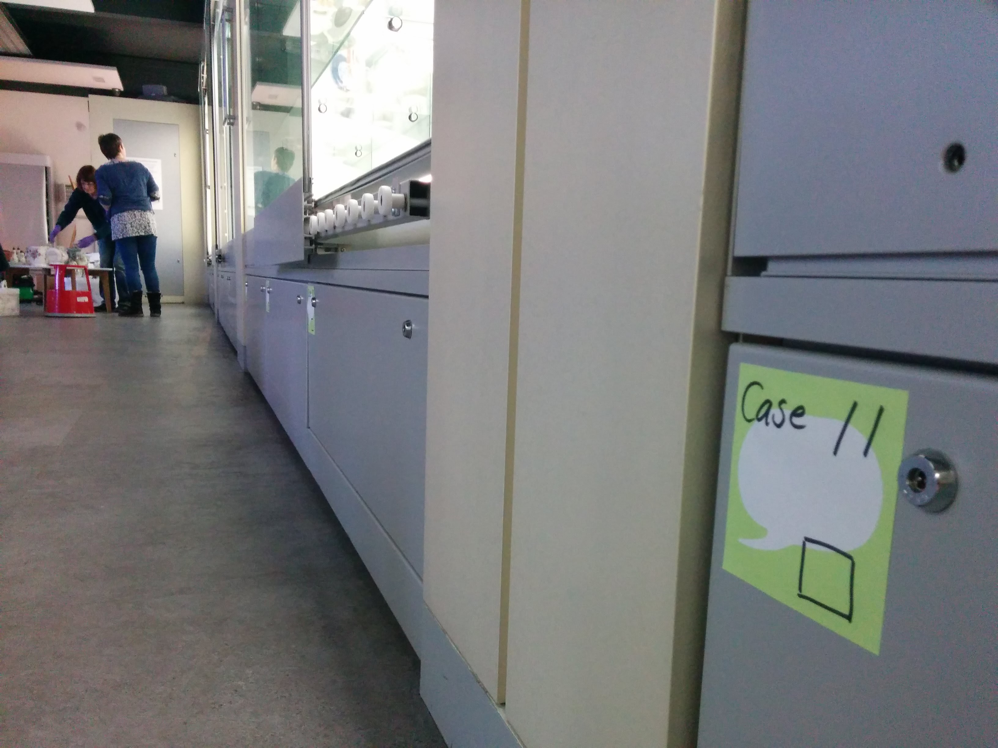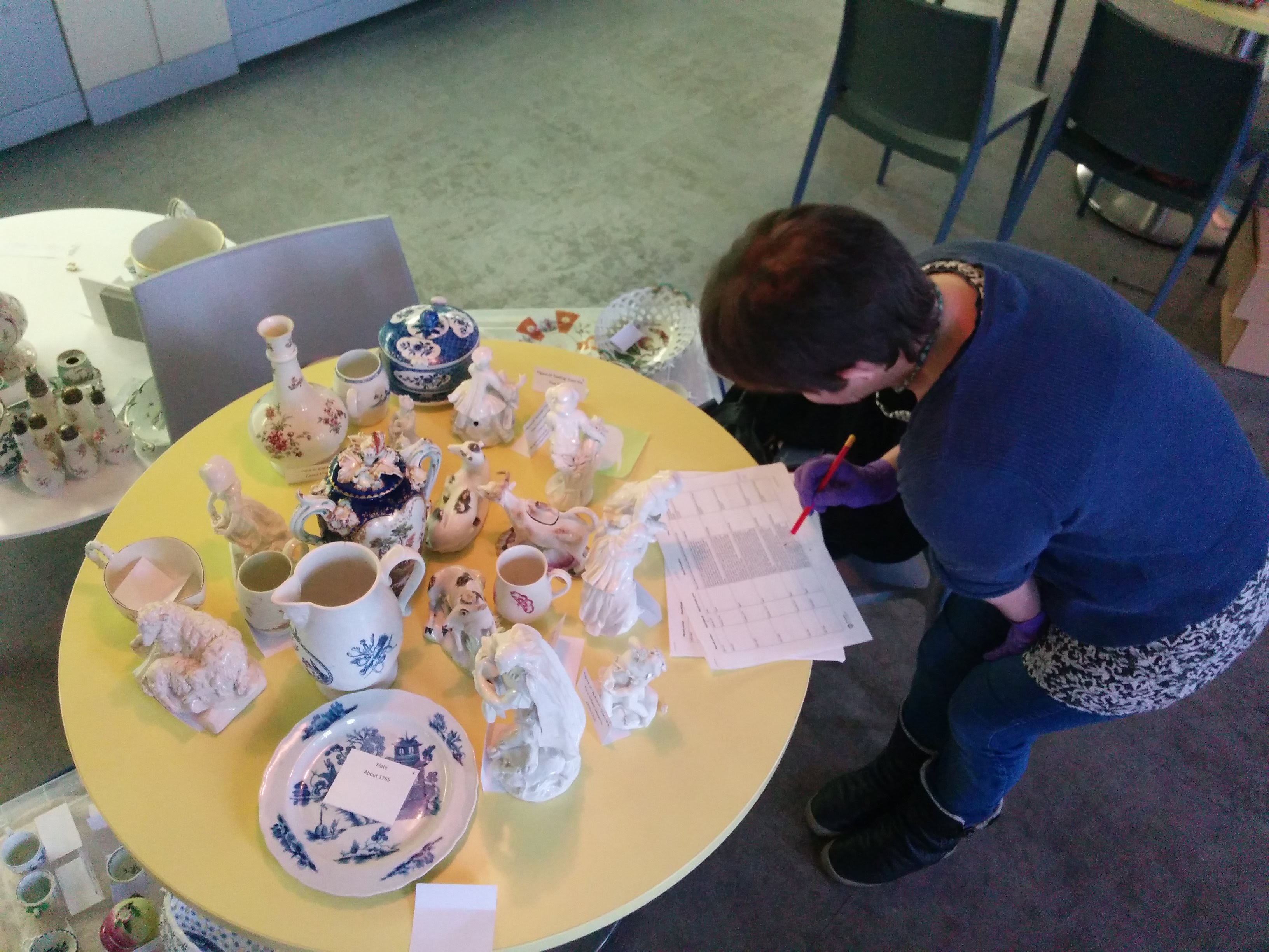 As the work involves removal of the ceramics from the cabinets it can only be completed on a Monday when the building is closed to the public. I’m really excited to be able to assist; up until now I have only been involved in shorter term projects. This will be the first longer-term work I will have the opportunity to experience – the first time to see the curation, cleaning and documentation process from start to finish.
