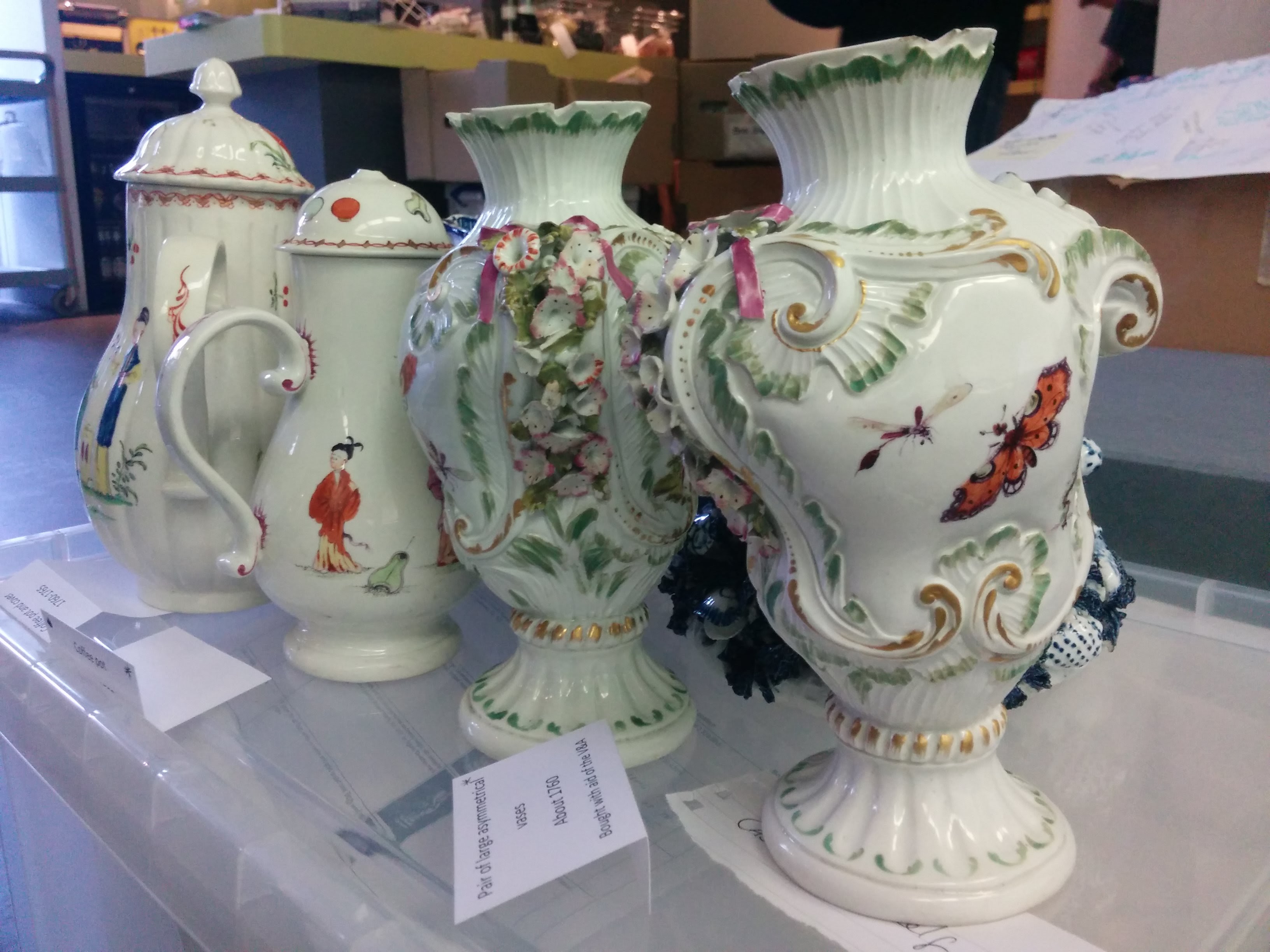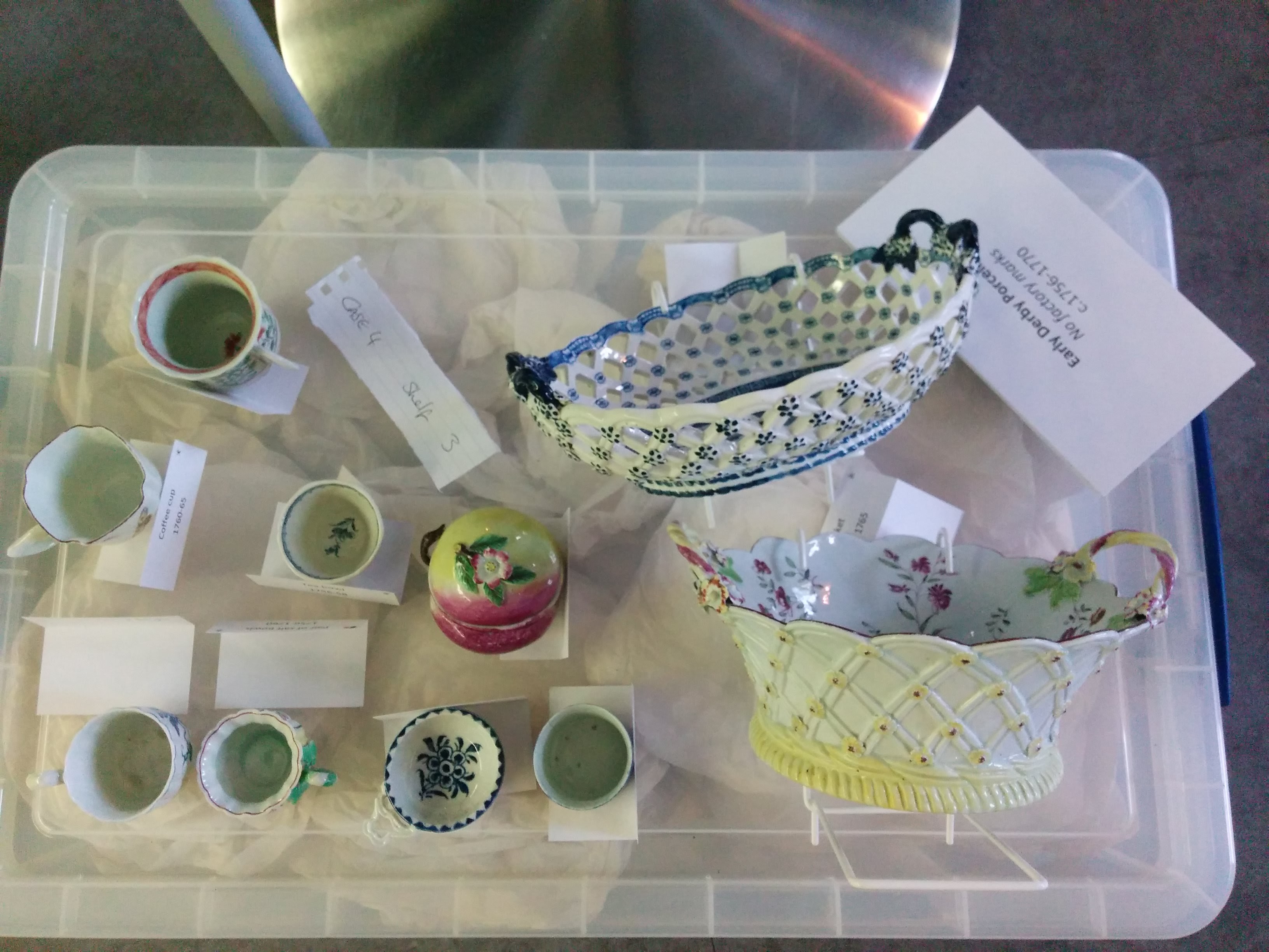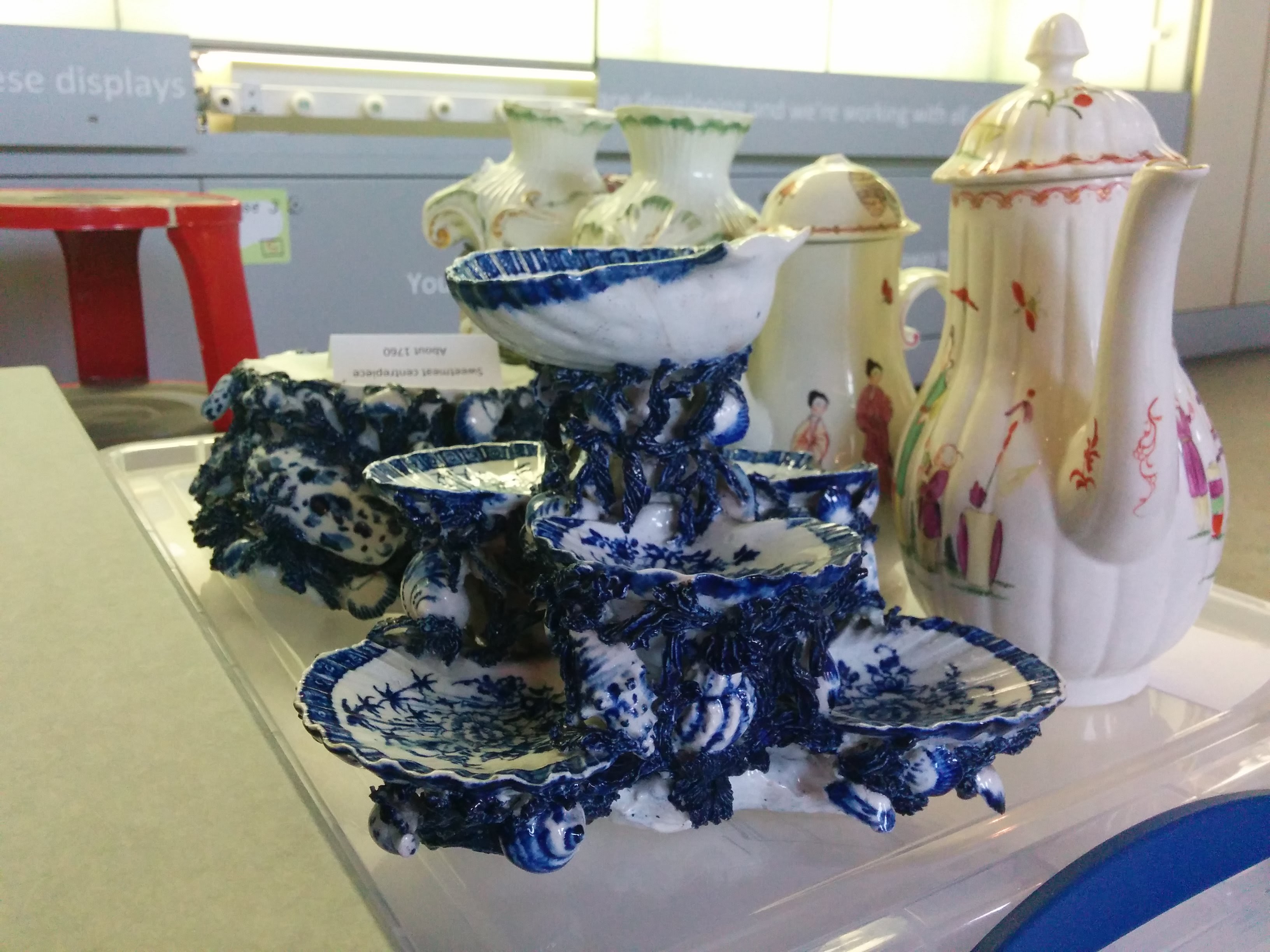 As the work involves removal of the ceramics from the cabinets it can only be completed on a Monday when the building is closed to the public. I’m really excited to be able to assist; up until now I have only been involved in shorter term projects. This will be the first longer-term work I will have the opportunity to experience – the first time to see the curation, cleaning and documentation process from start to finish.