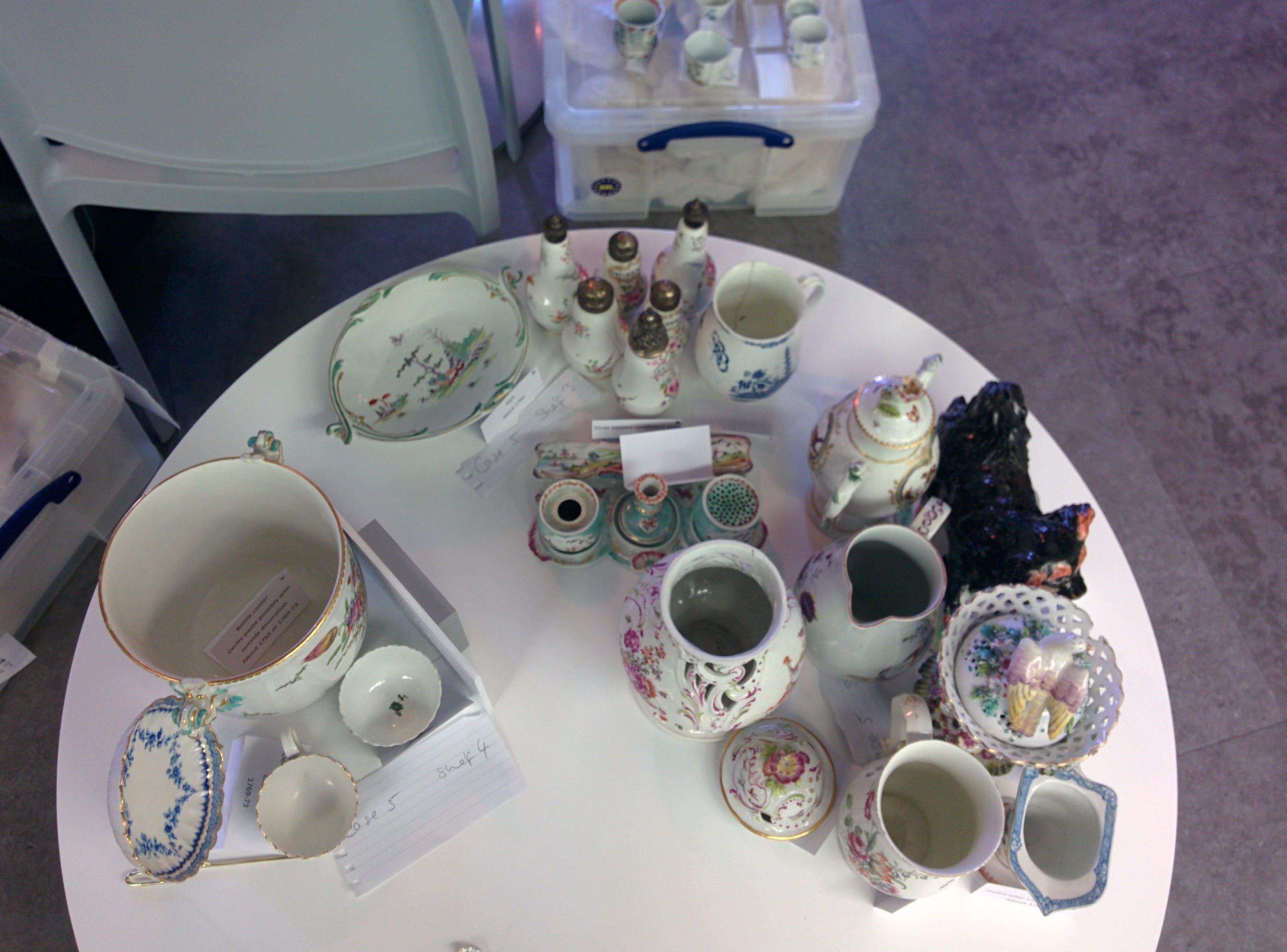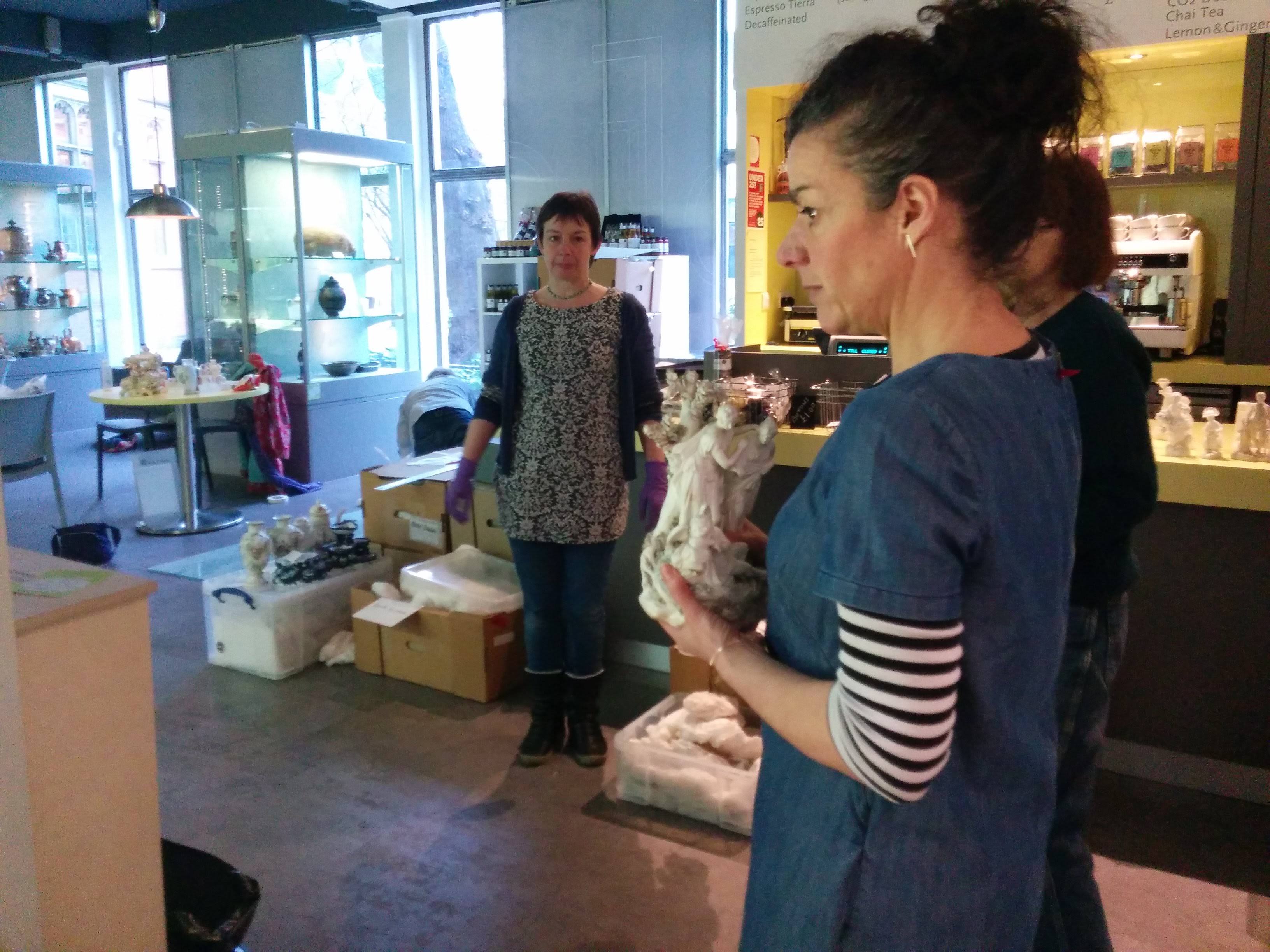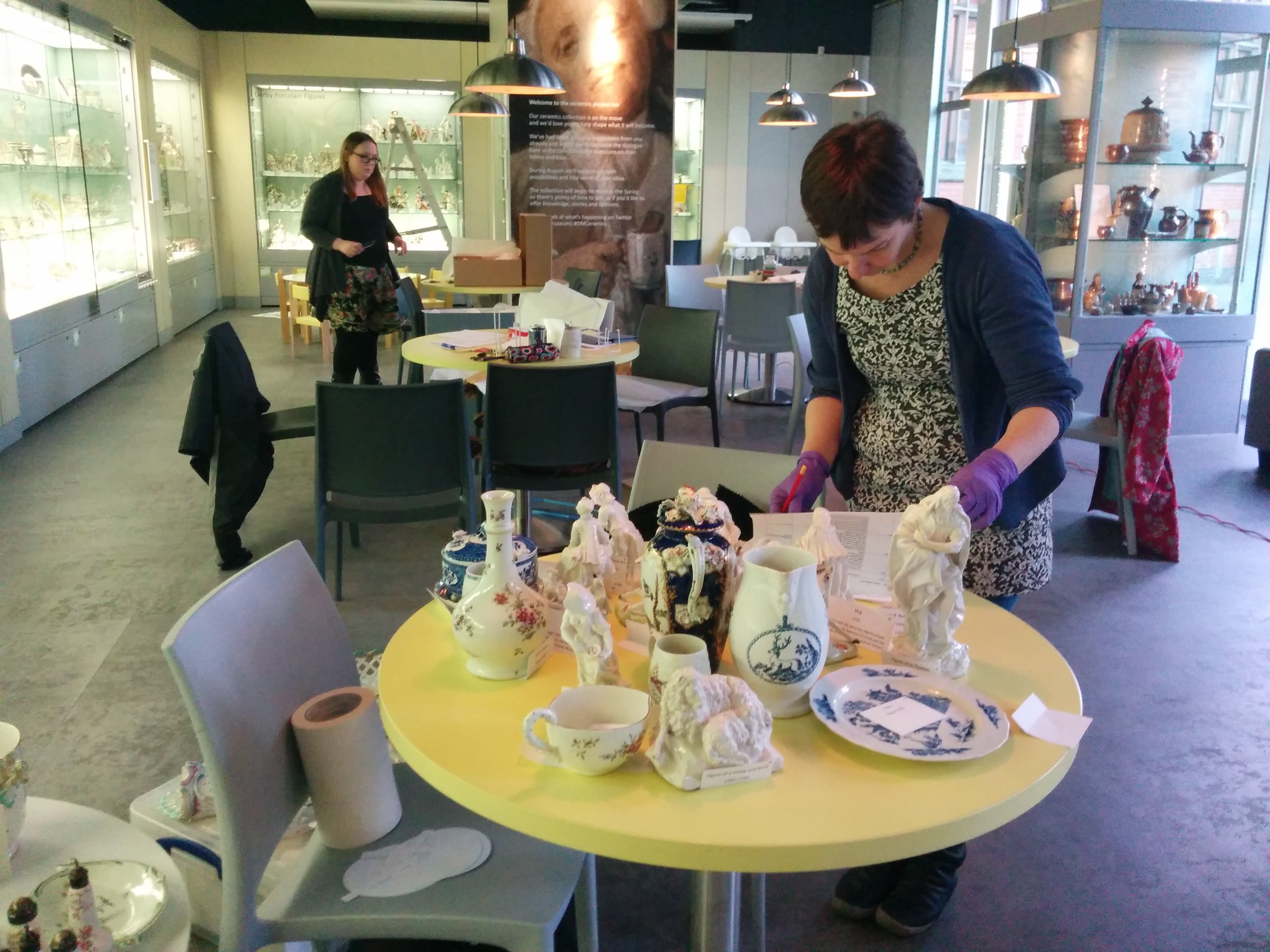 On the 11th January The co-production team began the work to reinterpret the ceramics exhibition in the Derby Museum cafe. The team, led by Andrea H-J, had been collecting feedback on the display for a while, both via Twitter and in person from Project Labs and general feedback left in the cafe.